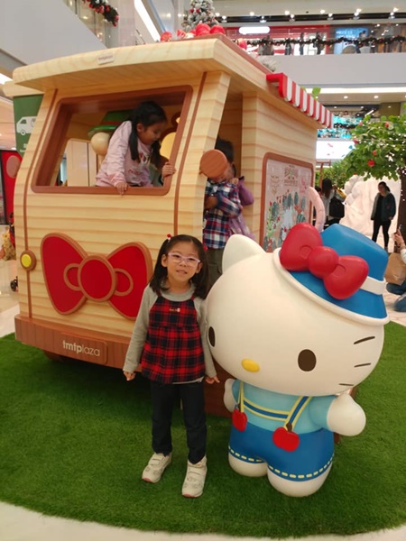 食完 lunch,就去商場一邊影相一邊等契媽契爺放工過來滙合我們 😊 呢個佈置超靚呀 !! 😍 除了 Hello Kitty 外,還有木偶和蘋果,好童話故事 feel,所以山長水遠都想過來影相呢 !